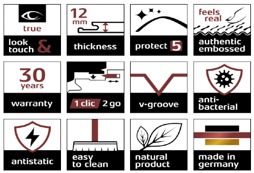 Förutom hållbara ytor i högsta slitagegsklasser (AC5 och AC6 i enlighet med DIN EN13329: 2016/08) har MyStylegolven inbyggd antistatisk teknik och en antibakteriell beläggning. Högkvalitativa, slitstarka golv som erbjuder en imponerande hållbarhet och har genomgått noggrann testning